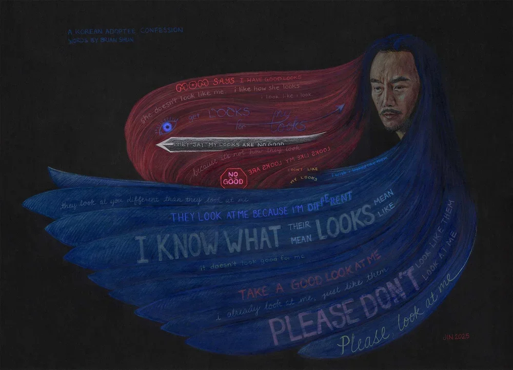 Brian Shun 1/16/24 Brian Shun 1/16/24 My Looks My Looks. A poem by Brian Shun. Art inspired by the poem created by Jeanie Inglis, a Korean Adoptee. Read More
